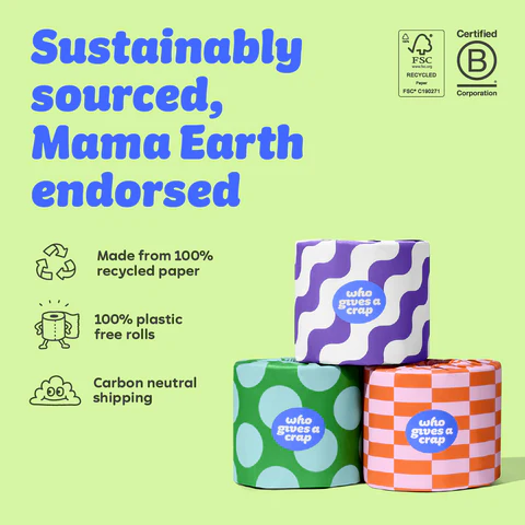 Modern recycled toilet tissue isn't the scratchy grey paper of decades past. Who Gives A Crap's manufacturing process creates genuinely comfortable tissue that performs well whilst using material that's already been through one lifecycle.