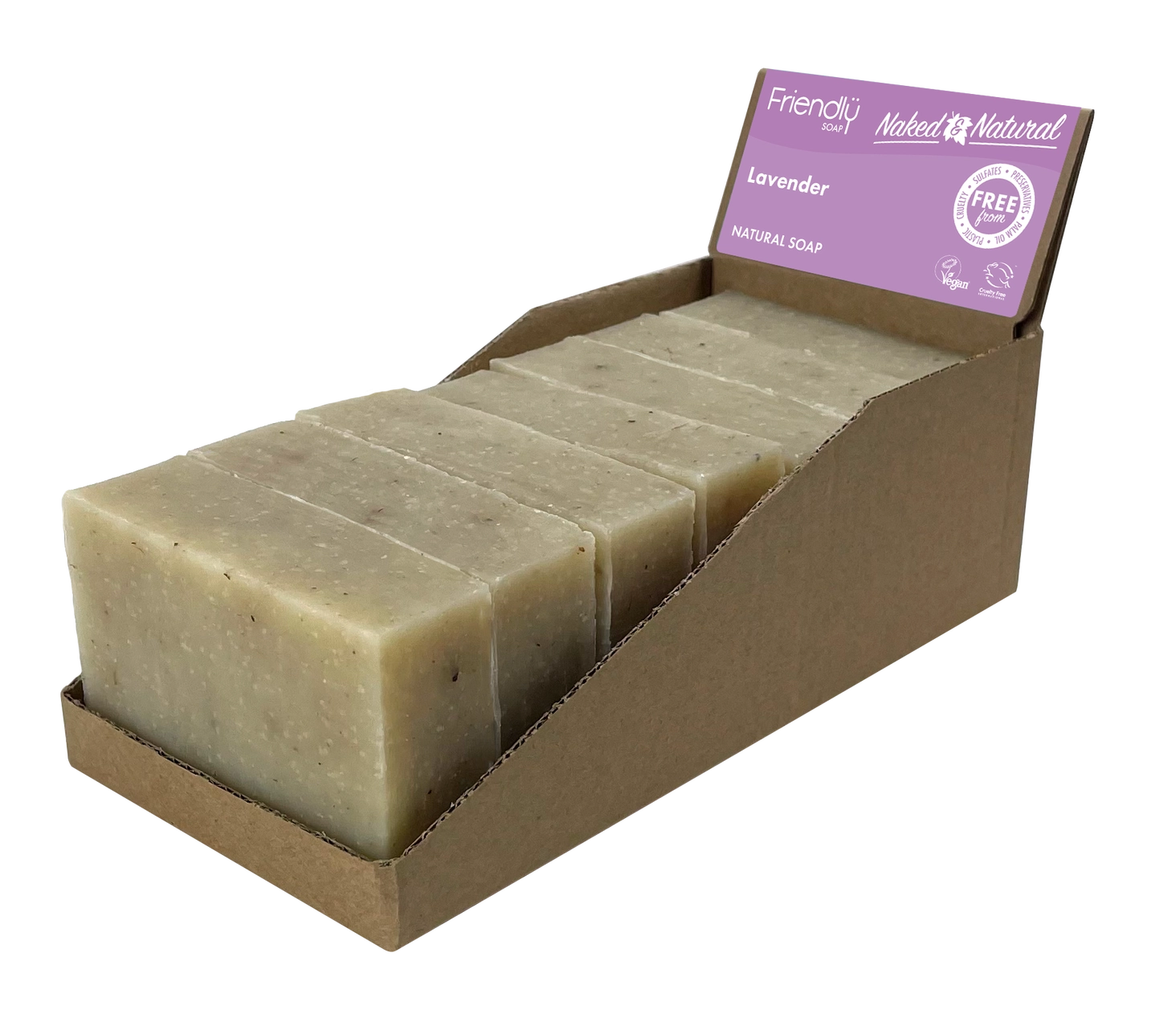 Made by Friendly Soap in Yorkshire using natural, plant-based ingredients that are gentle on your skin and kind to waterways. Real lavender flowers and essential oil combine with shea butter for a moisturising lather. No SLS, no parabens, no palm oil, no synthetic fragrances, no plastic packaging - just honest, calming cleansing.