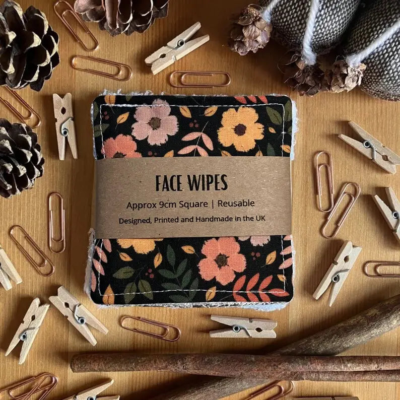 Reusable Face Wipes Dark Autumnal Floral Pattern (4 pack)