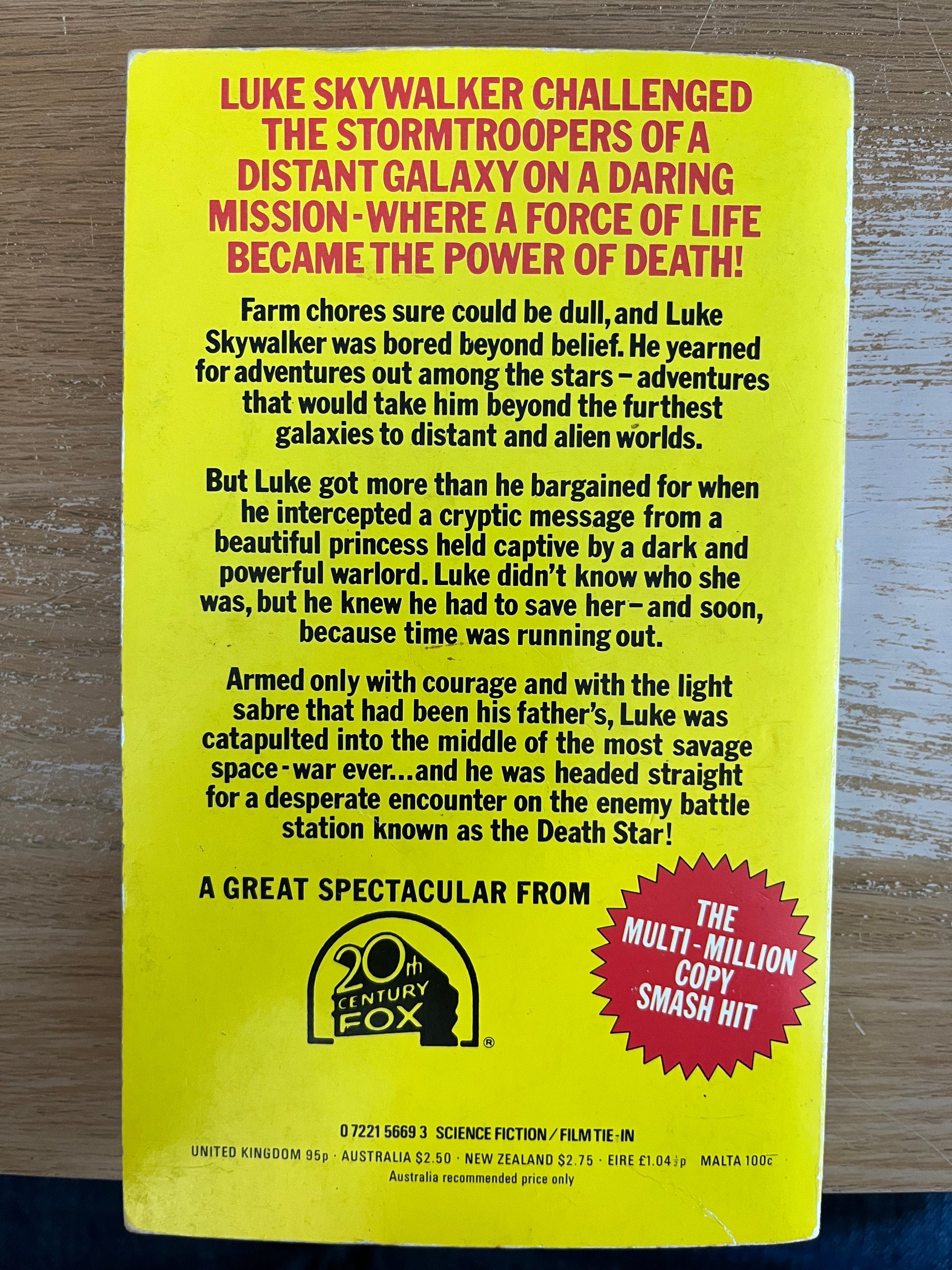 Published by Sphere as "The Greatest Film of the Century," this edition includes 16 pages of fabulous colour featuring stills and artwork from the original 1977 film. This is the novelization that introduced millions to the Star Wars universe before they ever saw the film, capturing the magic and adventure that would define a generation.